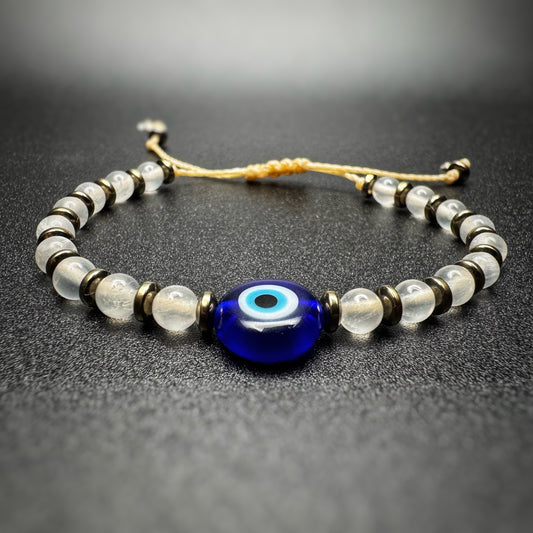 Evil Eye Protection Bracelet with Selenite and Pyrite